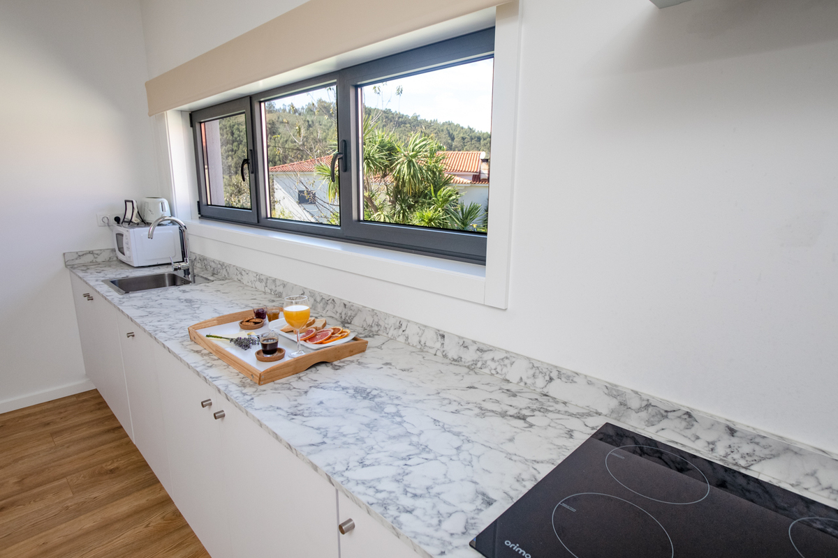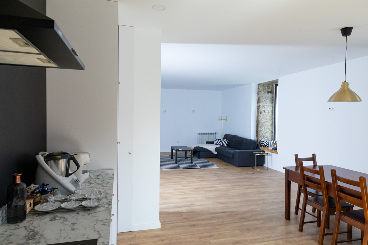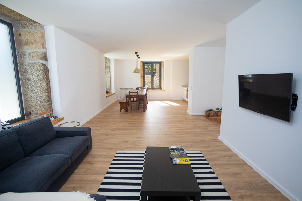 Com uma decoração muito clean, é composto por 4 apartamentos, 1 apartamento t2 e 3 apartamentos t1, todos os apartamentos são equipados com liagação ethernet e aquecimento central.